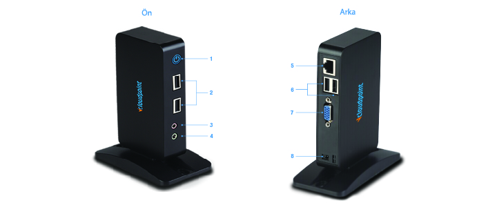 vCloudpoint S100 Zero Client 2x Ön Yüzde ve 2x Arka Yüzde toplam 4 Adet USB 2.0 port barındırır. Bu sayede çok geniş yelpazede çevre birimlerinin kullanımına olanak sağlar.